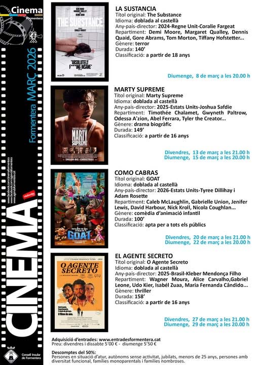 50% de descompta per a persones en situació d’atur, autònoms sense activitat, jubilats, menors de 25 anys, famílies monoparelntals, famílies nombroses i persones amb discapacitats.